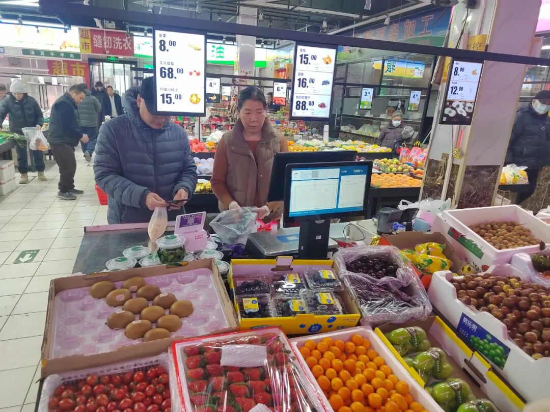 金瀛便民陶然亭四平园百姓服务中心于2018年由四平园菜市场升级改造而来,总面积700+平方米,辐射周边社区居民约4000户。2023年,该服务中心进行了新一轮改造,配置了部分电子价签。服务中心白经理表示,价格战对于市场而言并非长久之计,该服务中心注重与客户之间的情感链接,强调“有温度的服务”。高黏性的客户群体为服务中心带来了日均1500+的客流量。同时,市场也支持为客户线上配送,居民采买变得更为便捷。