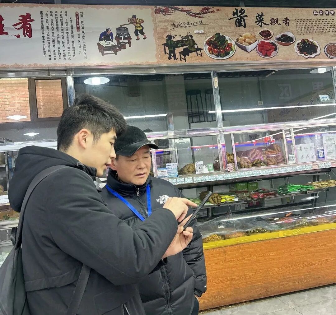 市场早在2023年底就已完成海淀区市场监管局生鲜灯改造,也是全市首批13 家完成改造的食品集中交易市场之一。目前,市场已统一配备智能溯源电子秤,完成熟食区、肉类区等重点摊位证照上墙。现场,我会也与市场负责人进一步讨论了如何通过智慧化系统进一步优化市场运营效率,提升服务水平,为市场提质增效实现赋能。