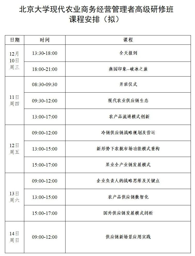 第二期“北京大学现代农业商务经营管理者高级研修班”火热报名中~