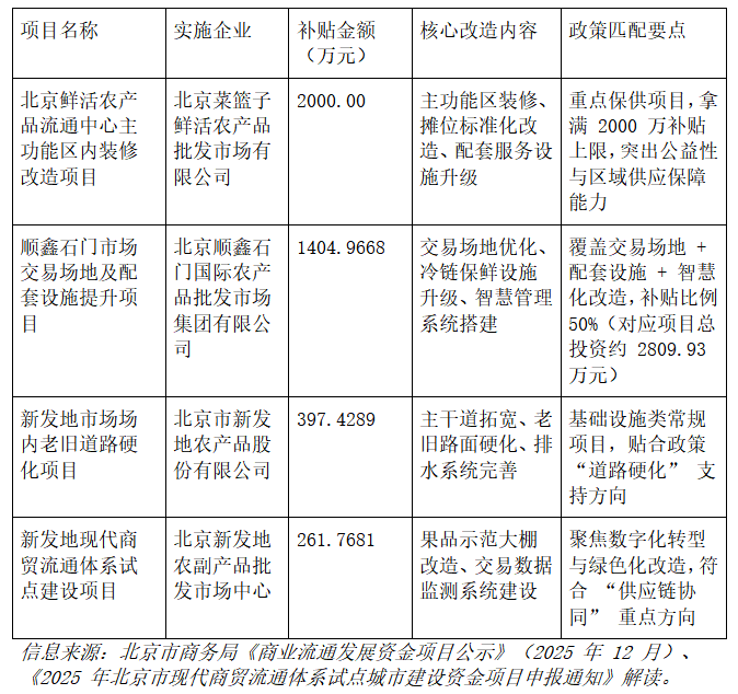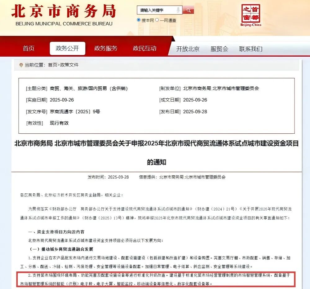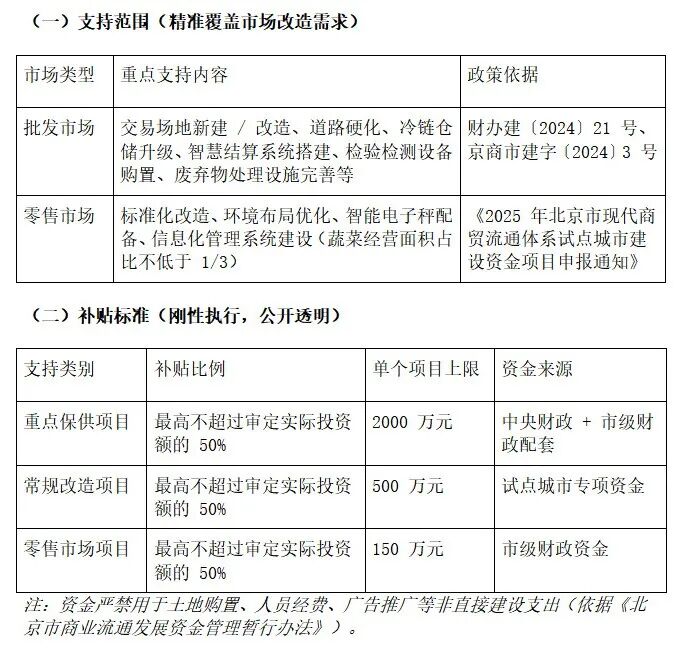 政策通过 “先建后补” 方式,引导市场完善基础设施、强化智慧赋能、提升保供能力,既降低企业改造投入压力,又筑牢首都 “菜篮子” 供应安全防线,推动农产品流通体系向标准化、数字化、绿色化转型。
